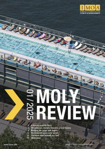 IMOA’s new MolyReview is out now! In this issue, discover how molybdenum-alloyed stainless steel made possible an Olympic-length floating pool on the River Seine; how 2205 duplex stainless steel creates a spectacular footbridge on Cornwall’s rugged coast.