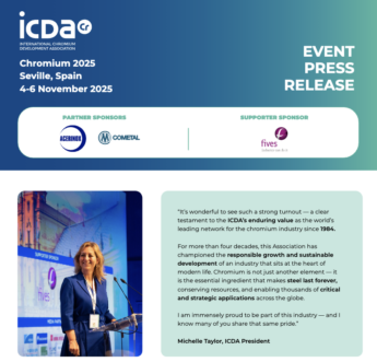 The ICDA is pleased to announce that the ICDA will enhance its ESG support to the chromium industry and ICDA members with the recent hire of an ESG coordinator. Read more via this link