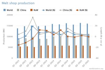The world stainless association has released figures for the third quarter of 2025, showing the total stainless steel melt shop production for the first 9 months of 2025 was 48.0 million tonnes, an increase of 3.0% compared the first 9 months of 2024.